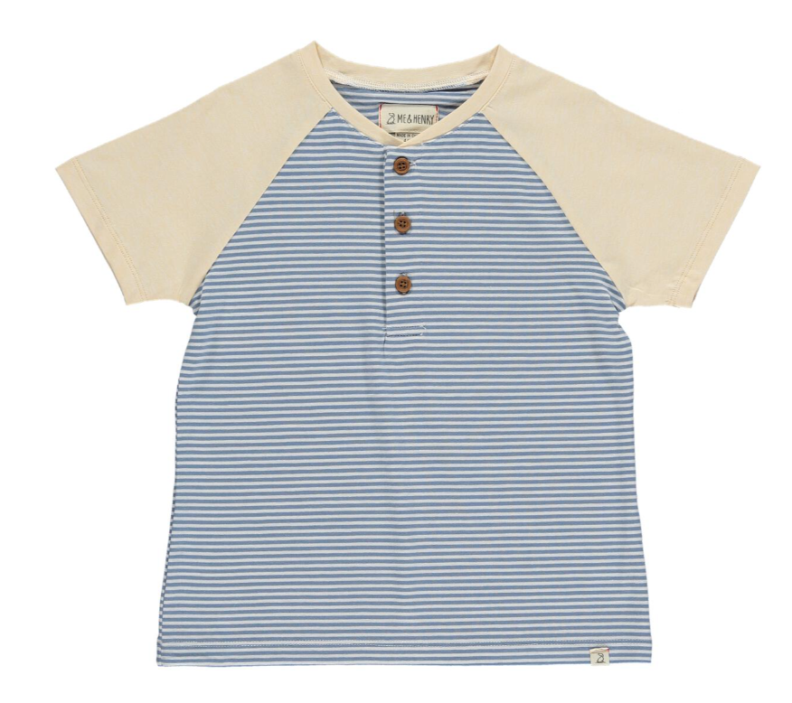 Introducing the Beacon Raglan Henley Tee: a playful twist on the classic henley. With its blue and white stripe design and button detail, it's perfect for any casual occasion. Made with super soft fabric, it's as comfortable as it is stylish. Add it to your little one's wardrobe for a quirky and fun addition!