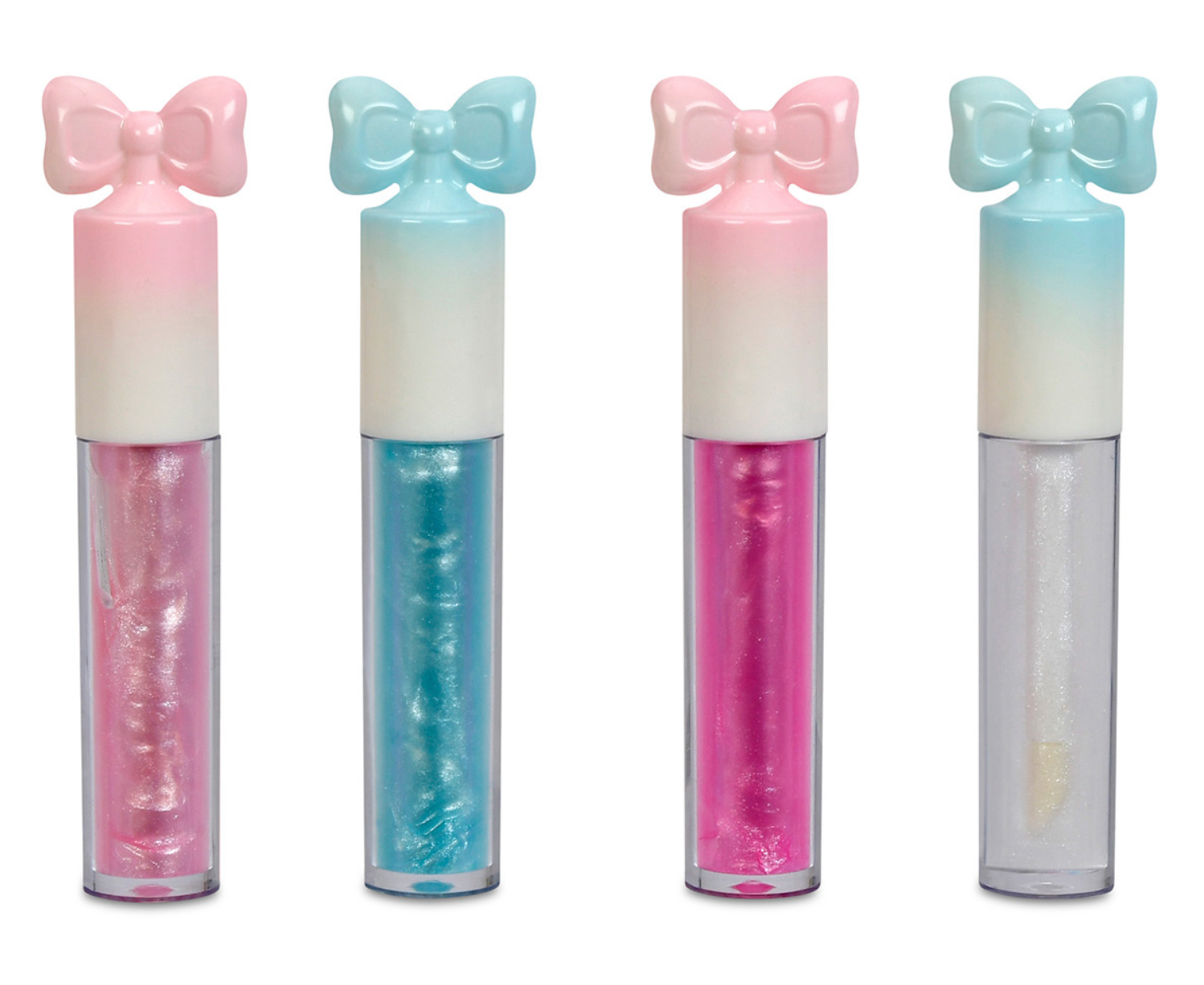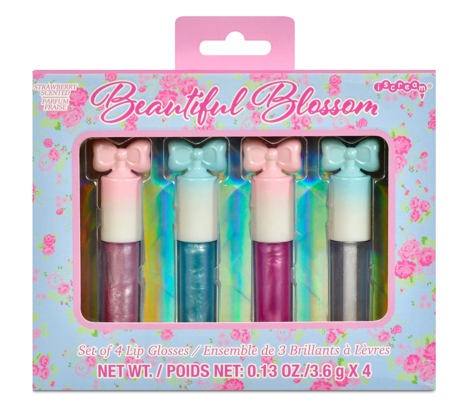 Pucker up with our Beautiful Blossom Lip Gloss Set! This trendy collection features four shimmery glosses, each with a playful bow wand applicator that makes touch-ups a breeze. Add a sparkly pop of color to your smile and keep your lips deliciously glossy wherever your adventures take you!