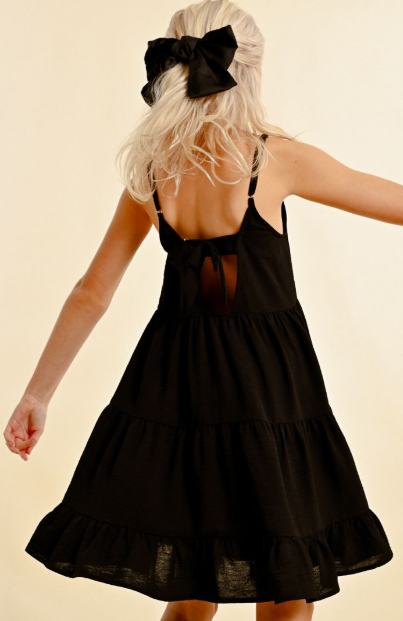 This versatile Bow Back Tiered Dress is the perfect summer black dress for any occasion. With a button front and adjustable straps, it offers both style and comfort. Don't miss out on this must-have addition to your summer wardrobe.