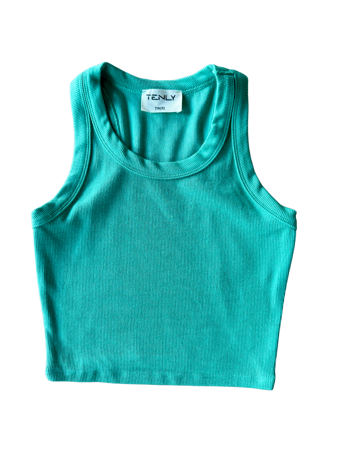 Get your summer style on point with our Emerald Ribbed Racerback Tank! Made for tweens, this trendy and comfortable tank top features a cropped fit for a fun and stylish look. Pair it with our matching Emerald Hoodie and Shorts for a complete and stylish outfit.