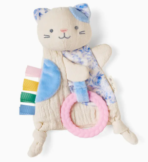 This adorable sensory toy will be your baby`s new BFF! Our Kitty Crinkle is a soft, natural cotton crinkle toy that includes textured ribbons & a teething ring.