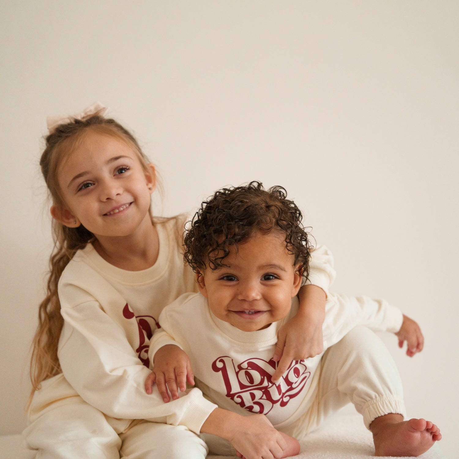 Dress your little Love Bug in our adorable cotton sweater, a perfect blend of charm and comfort. Made from 100% cotton with a lightweight feel, it's ideal for layering or standalone wear. The front boasts a playful 'Love Bug' script, while the back surprises with an embroidered ladybug, adding a pop of whimsy to this sweet piece. Delightfully soft and breathable, the Love Bug Crewneck is a lovable addition to your baby's wardrobe.