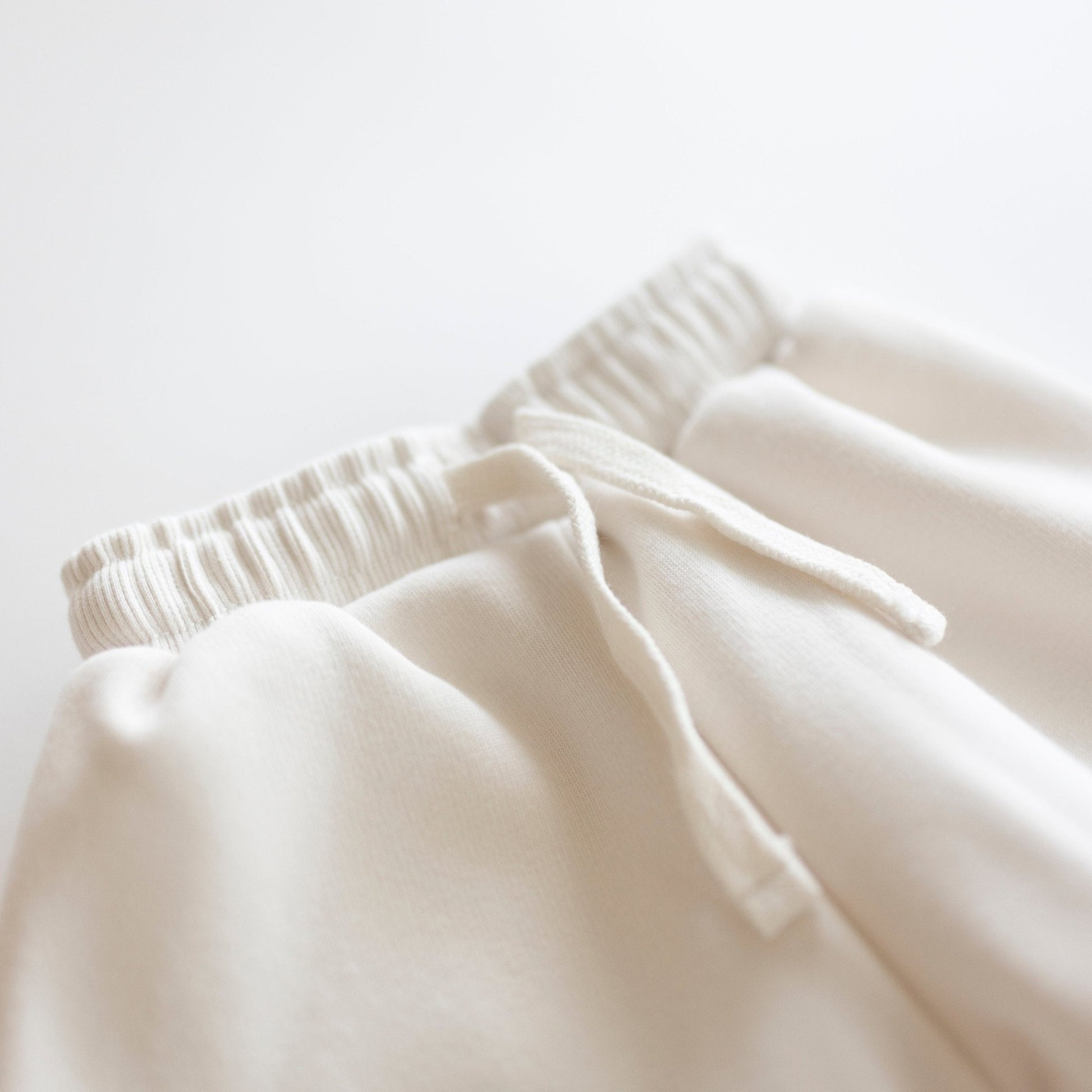 Our new pre-washed fabric is softer than ever, offering chic style and comfort with every step. Available in neutral tones, these sweatpants are easy to mix and match. Designed for newborns up to 6-year-olds, they provide a perfect fit for every stage. Durable and elegant, they stay soft and stylish through all of life's adventures, even after many washes.
