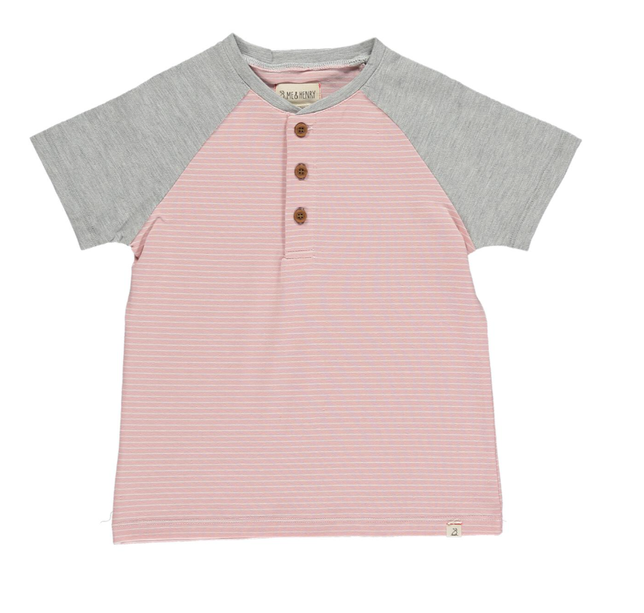 Introducing our Pink Stripe Raglan Tee, the perfect blend of style and comfort. With pink and white stripes and contrasting grey sleeves, this tee will add a pop of color to any outfit. Plus, the button front adds a unique touch. Get ready to turn heads with our playful twist on a classic t-shirt!