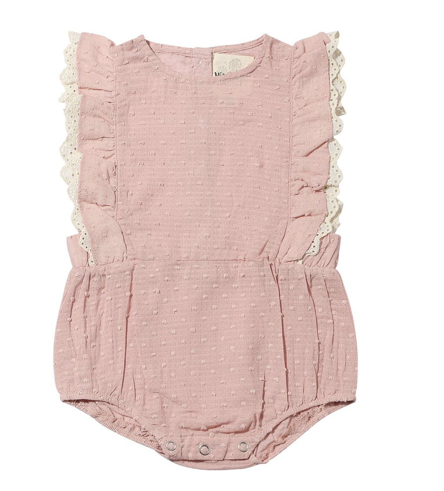 This Rose Ruffle Sleeve Bubble offers a sweet and playful touch to your child's wardrobe. The dainty flutter sleeves add a delicate charm, while the soft fabric ensures comfort during play. A must-have for any stylish and fun-loving girl.
