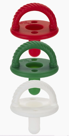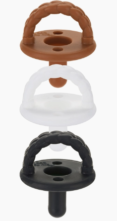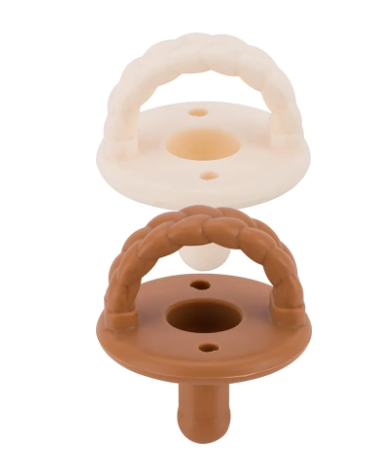 Your little sweetie will look even cuter with the Itzy Ritzy Sweetie Soothers! These 100% food grade silicone pacifiers come in a package of two, each with a unique design and a soft, durable nipple to calm your little one. For ages 0 months +. They all meet ASTM safety standards and are BPA and PVC free.